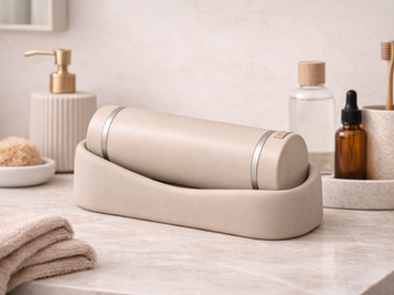 Not something you hide in a drawer. The Capsule is intentionally minimal, with a holder that lets it live comfortably on your bench or vanity.